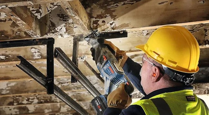 Built for heavy-duty demolition and concrete work, Bosch SDS-max hammers deliver corded-level power with BITURBO Brushless motors, KickBack Control, Turbo Power mode, and Active Vibration Control.