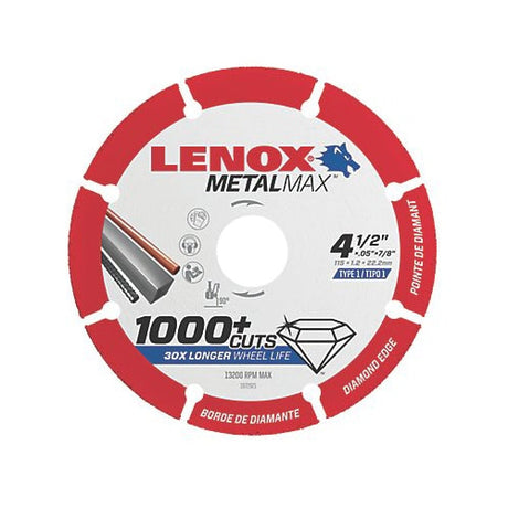 $2.93$5.57Unit price /UnavailableIn stockLenox 1972921 4-1/2" x 7/8" MetalMax Diamond Cutoff Wheel