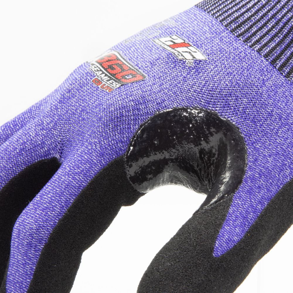 The AX360 Seamless Knit Cut 3 Lite Gloves are the ultimate hybrid of tough cut protection and extreme comfort and dexterity. The knit cloth main body of the glove is fully seamless and made of a blend of lightweight yet breathable fabrics that keep your hands more comfortable when working in hot and humid conditions than regular leather or rubber work gloves while still providing reliable protection against cuts and lacerations and more. The palm and undersides of the fingers are dipped in nitrile foam that is then textured to give excellent abrasion resistance and superb grip in dry or wet conditions. An additional patch of rubberized material is located on the thumb saddle between the thumb and index finger to reinforce it against tearing on such a high-wear location. The elastic cuff fits snugly around your wrist to keep out dirt and debris like gardening soil, sawdust, or metal shavings that can cause irritation if they get inside the glove. Tested and rated 4344BX on the EN388 scale to protect against abrasion, cuts, tears, and punctures, these utility work gloves are perfect whether you're gardening on a sunny day, cleaning up garbage and scrap, doing woodworking projects in the garage, or sporting wrenches in the mechanic shop.