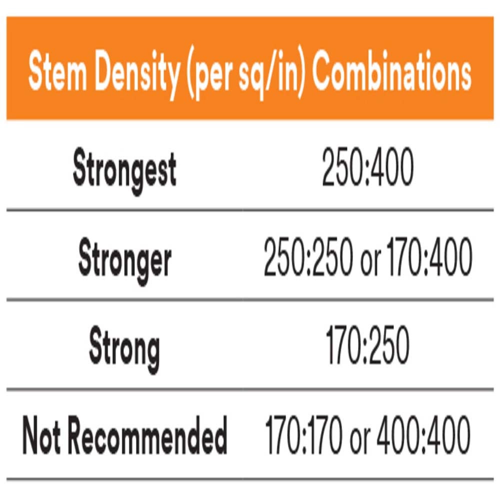 - Interlocking mushroom heads (170 stems/sq in) for high tensile strength