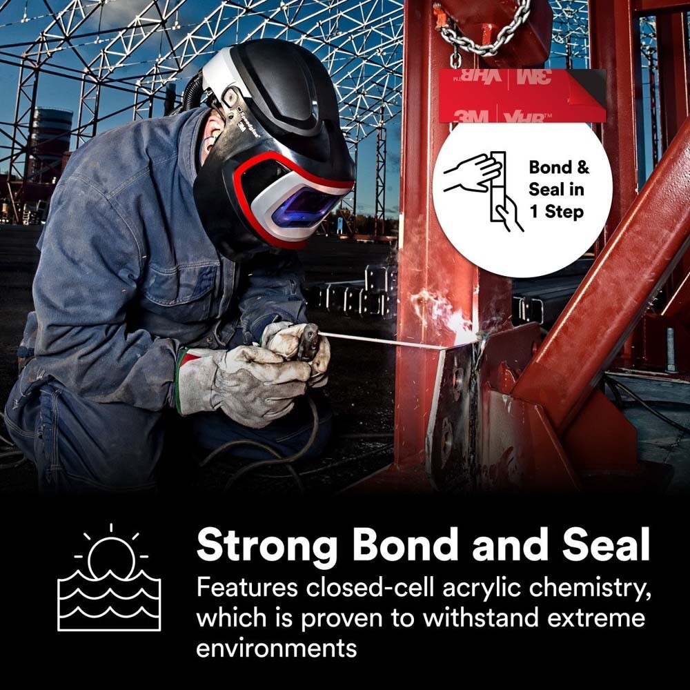 3M VHB Tape 5952 is a heavy-duty double-sided acrylic foam tape with a 45 mil thickness that bonds securely to painted and powder-coated surfaces, providing strong, conformable adhesion for indoor/outdoor applications and helping replace mechanical fasteners.