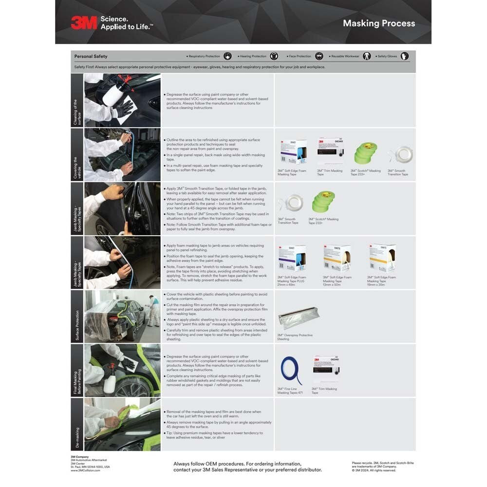 3M Soft Edge Foam Masking Tape 09678 creates a soft paint edge and seals door jambs and openings to prevent overspray during automotive painting. The flexible polyurethane foam conforms to contours and can be repositioned easily for clean, professional results.