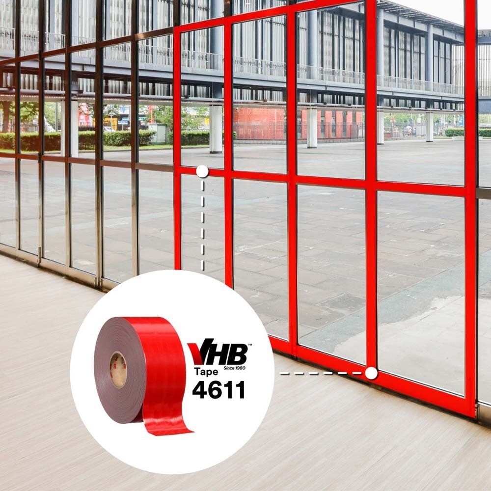 3M VHB Tape 4611 is a dark gray, double?sided acrylic foam tape designed for high?temperature bonding on high surface energy materials like aluminum, stainless steel, and glass. At 45 mil thick, it delivers high shear strength and a seamless alternative to rivets, screws, and welds.