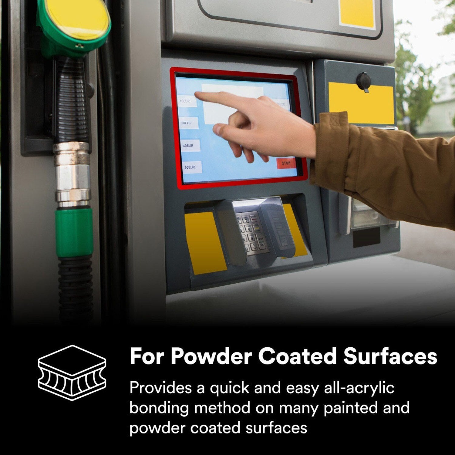 3M VHB Tape 5952 is a heavy-duty double-sided acrylic foam tape with a 45 mil thickness that bonds quickly to many painted and powder-coated surfaces, offering indoor/outdoor durability and strong adhesion for industrial mounting applications.
