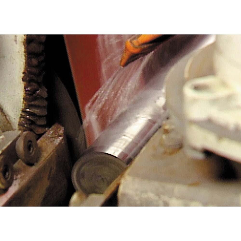 3M Trizact Cloth Belt 307EA features microreplicated aluminum oxide pyramids on a flexible JE-weight rayon cloth backing for consistent cut and fine finishes on hard metals. Film-lok splice ensures smooth running with reduced chatter, while Full-Flex construction conforms well for medium-pressure finishing. Supplied 50 belts per case.