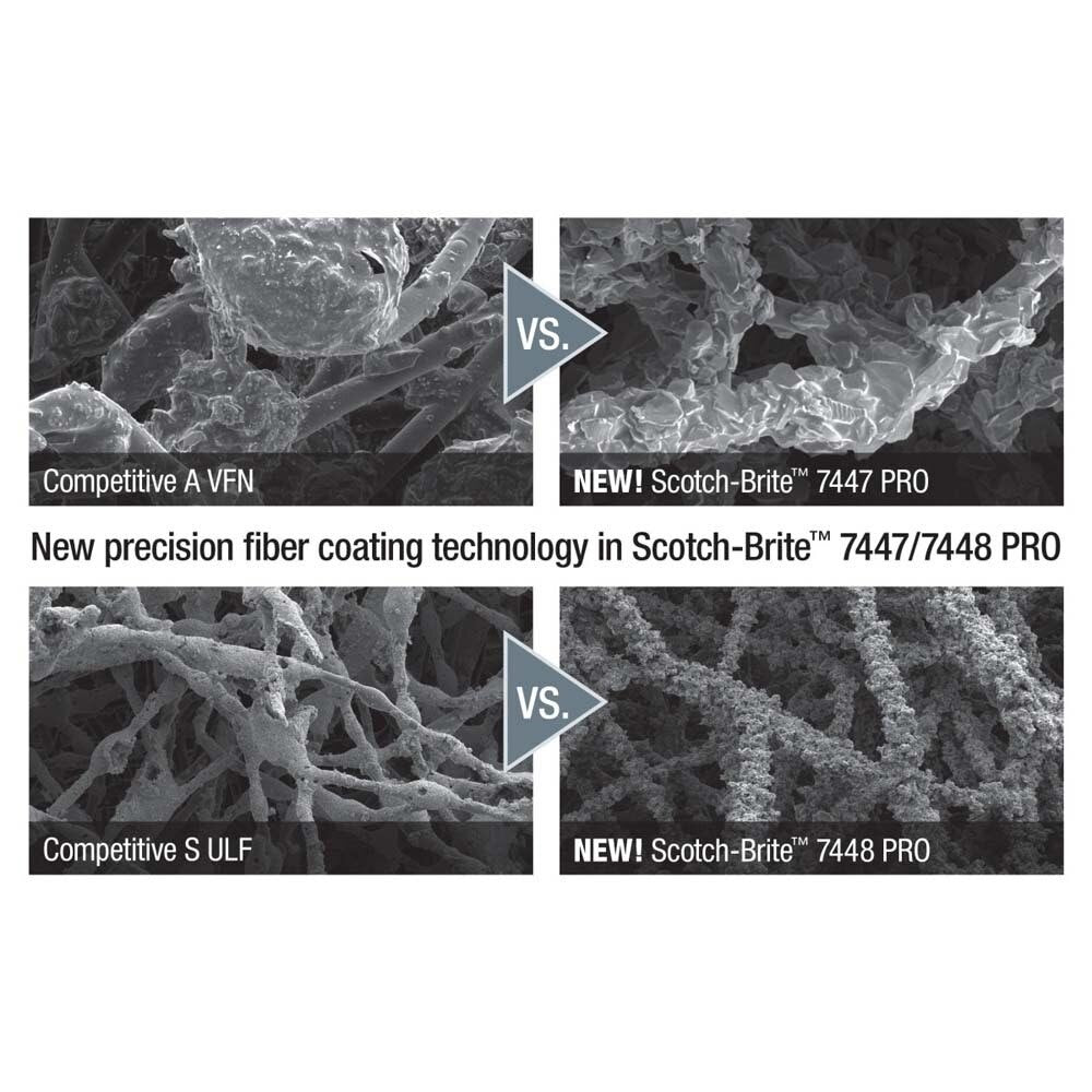 Scotch-Brite 7448 PRO Roll features ultra fine silicon carbide abrasive in a non-woven roll that cuts fast and delivers consistent, uniform finishes for surface prep, scuffing and hand blending on a variety of materials.