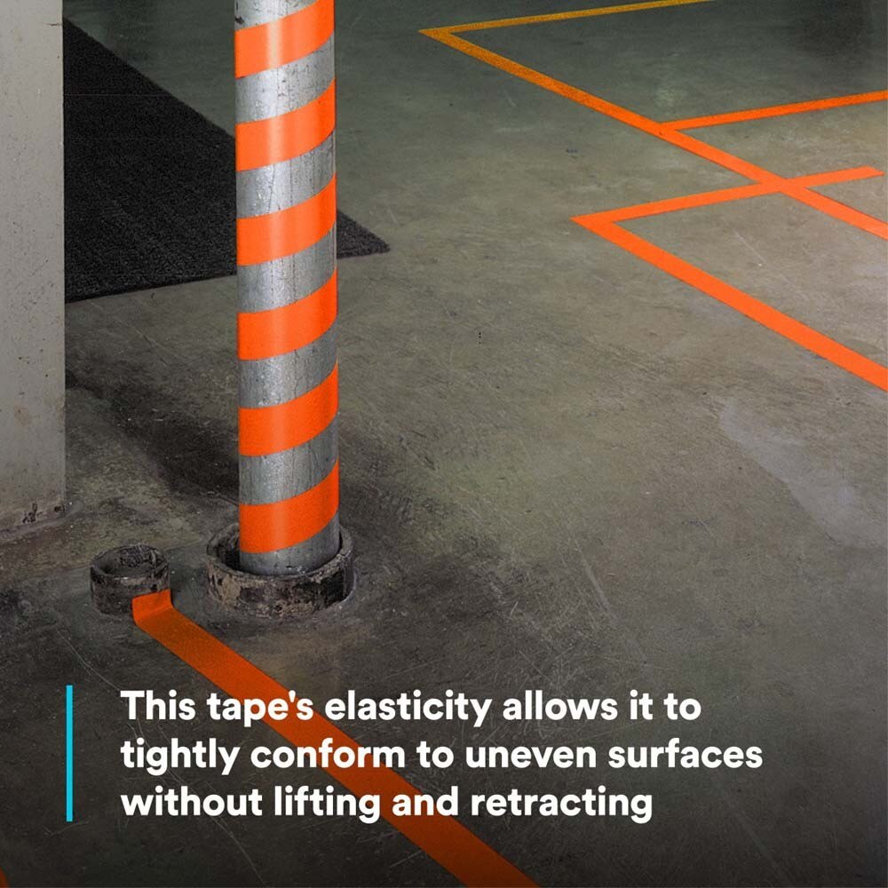 3M Vinyl Tape 471 in orange is a high-performance, conformable vinyl tape with rubber adhesive for long-lasting floor marking, sharp paint lines, color coding, and surface protection. It adheres instantly to a variety of surfaces, resists wear, moisture and solvents, and removes cleanly.