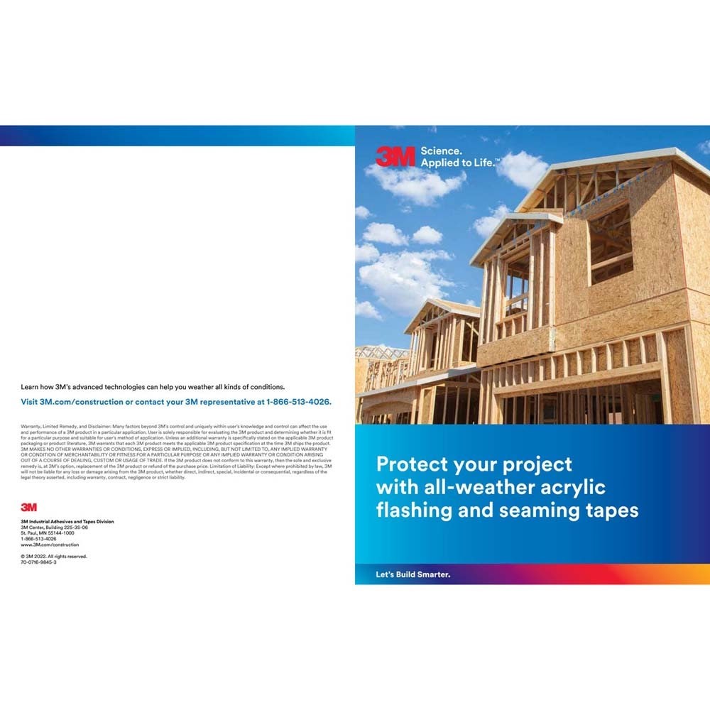 3M All Weather Flashing Tape 8067 is a self-adhered, waterproof acrylic flashing tape that bonds to most common building materials without primers, helping prevent moisture intrusion around windows, doors and other wall openings; designed for easy positioning with a split liner and reliable performance across extreme temperatures.