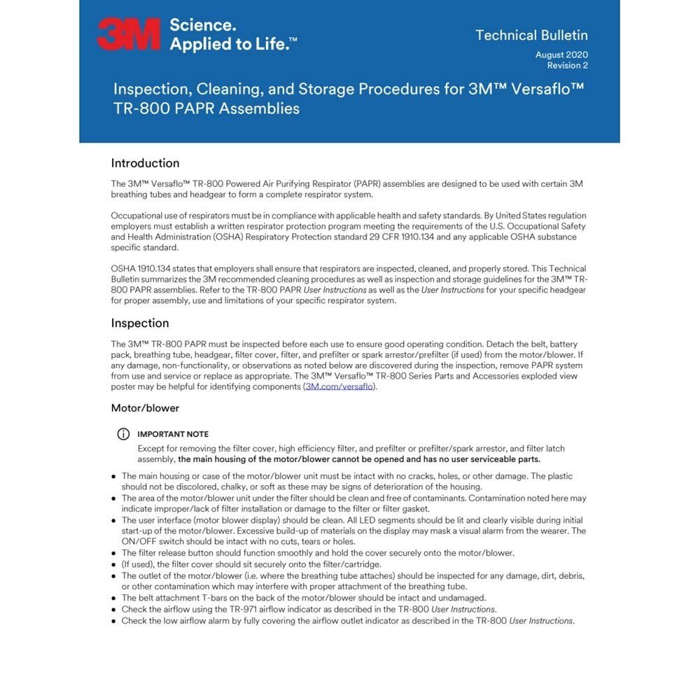 | Compatible With | 3M Versaflo TR-800 Series PAPR |
