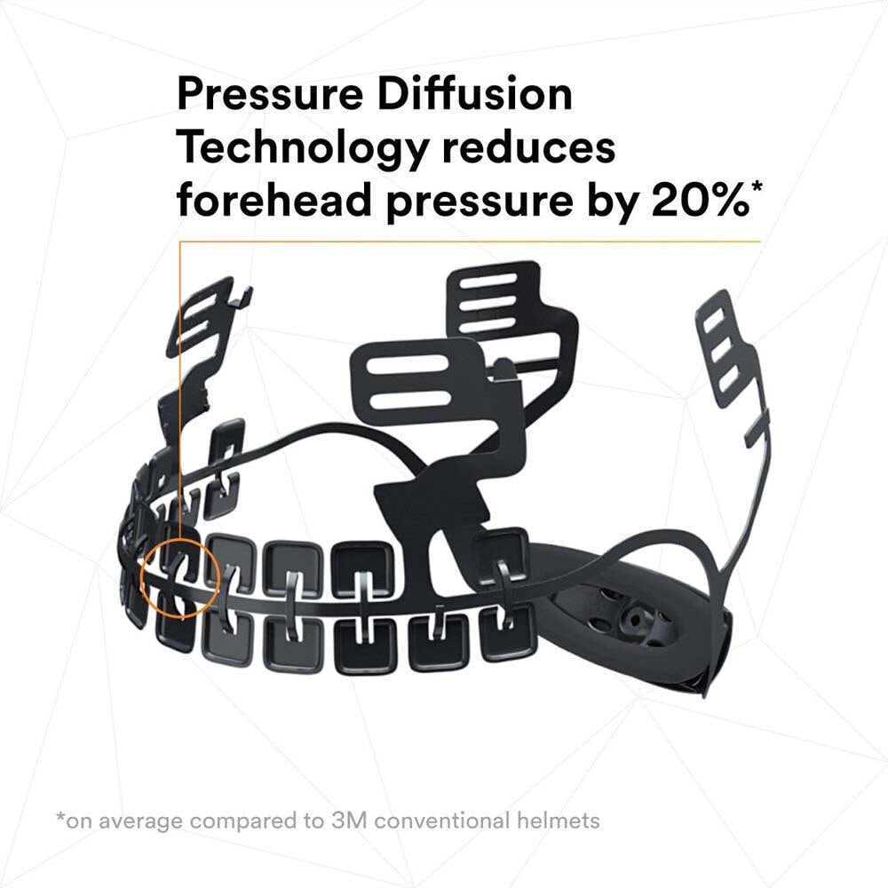3M SecureFit safety helmet features a climbing‑style design with a vented shell and a 6‑point suspension for comfort and stability. High‑visibility green color enhances jobsite visibility for construction and heavy infrastructure applications.