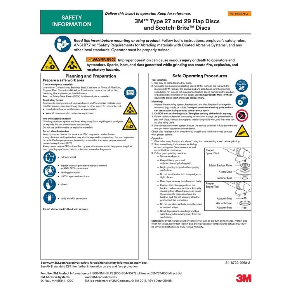 3M Flap Disc 769F is a high-performance, value-priced Type 27 flap disc featuring 3M Precision-Shaped Grain for fast cut and long life on carbon and stainless steel for grinding, beveling, blending, and surface prep.