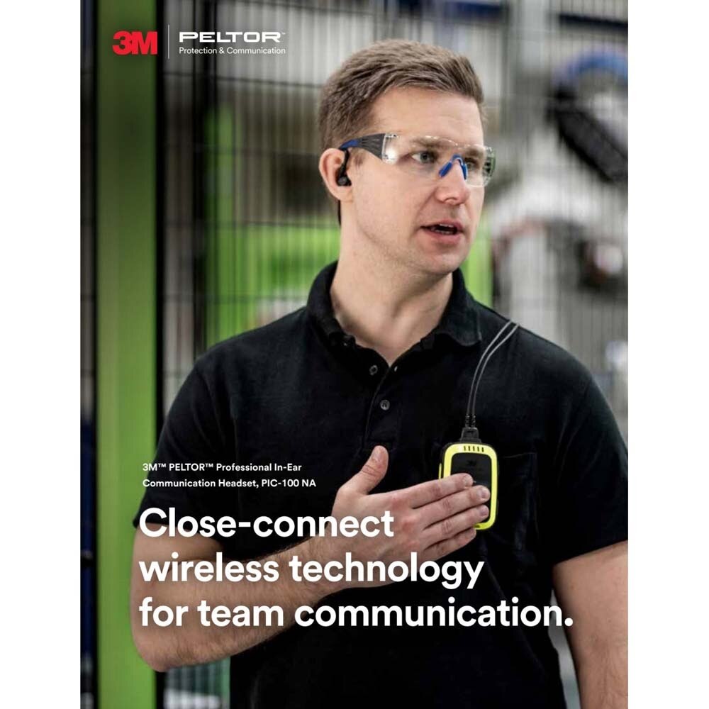3M PELTOR PIC-100 NA is a professional in-ear communication headset featuring close-connect wireless technology, in-ear speech microphone, VOX hands-free full-duplex communication, and environmental listening for clear team communication in noisy environments.