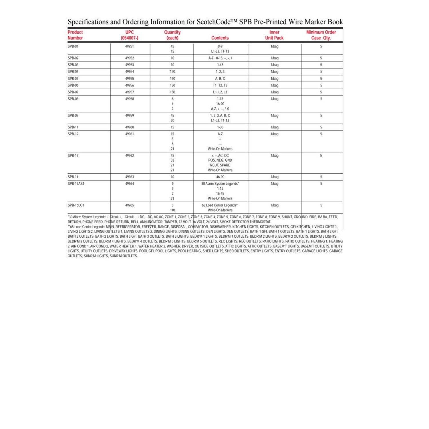 The 3M ScotchCode SPB-06 pre-printed wire marker book provides durable, easy-to-read wire and terminal strip identification with black characters on a white background for high visibility.