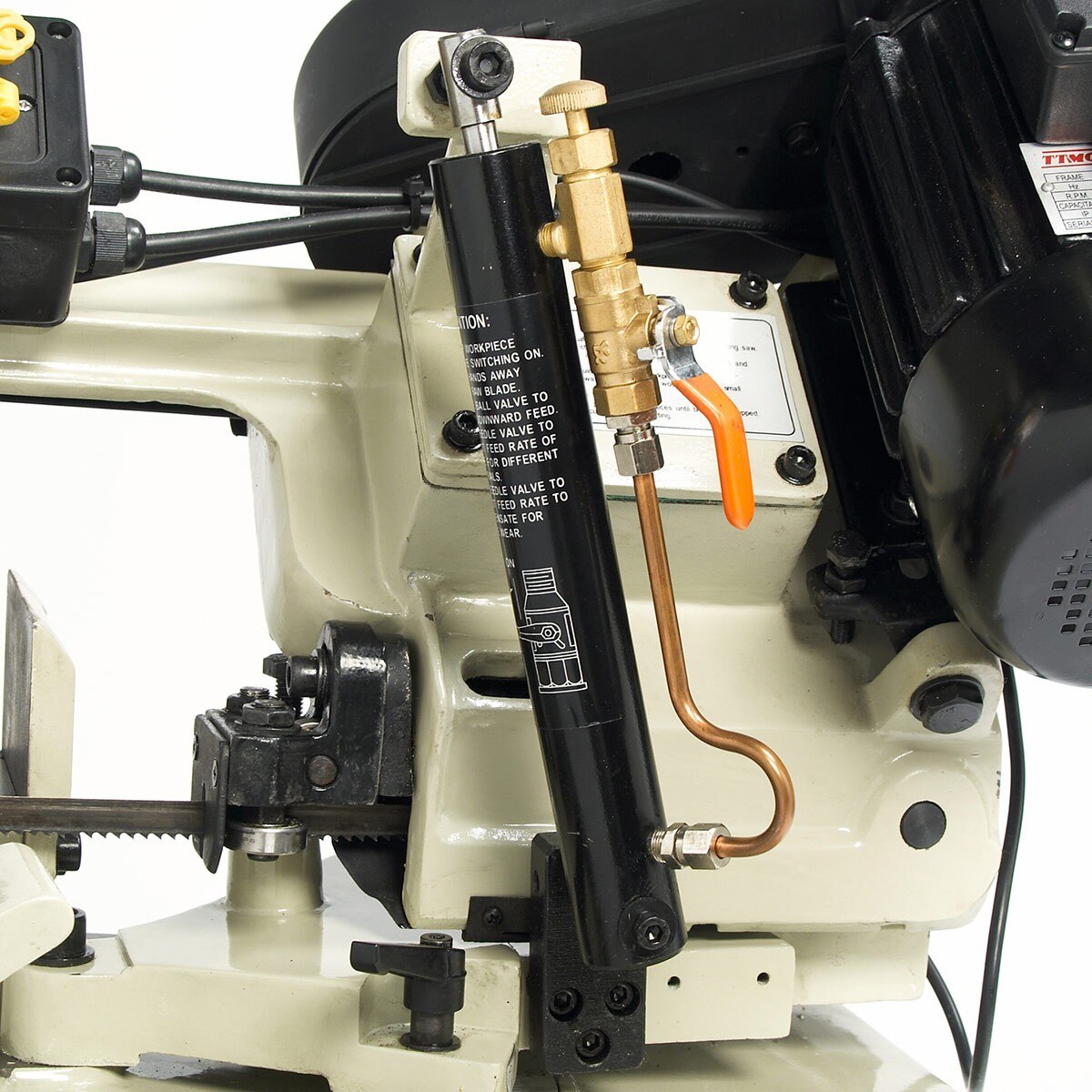- Fully-welded steel plate framework provides stability and helps this metal band saw last for many years.