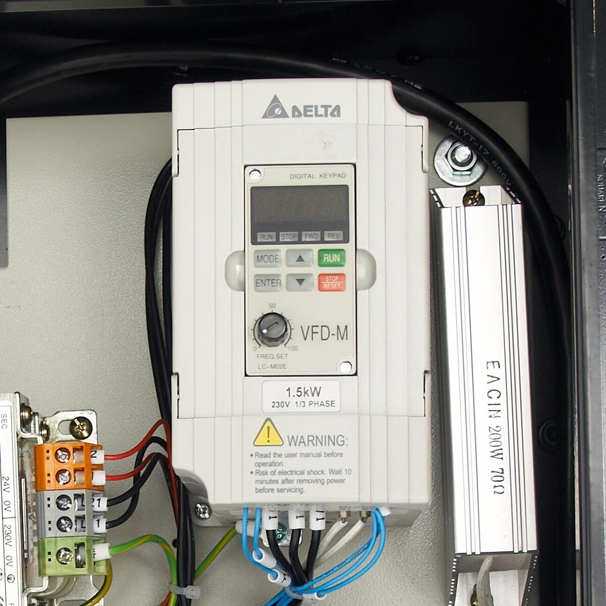 - Efficient Delta® inverter drives the mighty #4 Morse taper spindle and regulates the amount of power and rpms to the spindle.