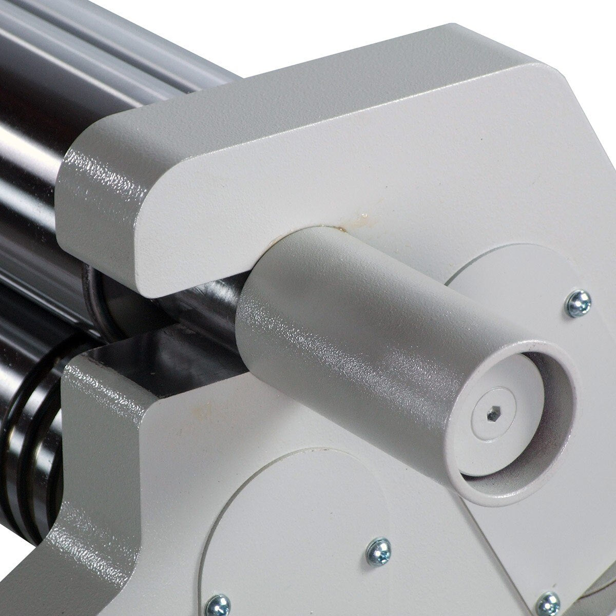 Do you currently have a slip roll but are constantly being bogged down when you need to form something a little thicker. That is where the PR-413 roll former comes in. This economical plate roll has the ability to handle up to 13 gauge mild steel over its whole 4’ length. Built with a 2 hp motor, hydraulically controlled back roll, and a steel frame, this electrical plate roller lets you tackle thicker gauges without getting bogged down. It comes with a DRO.