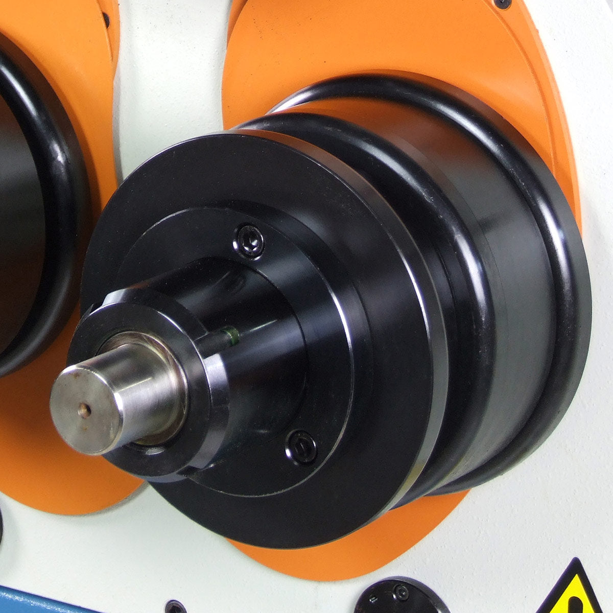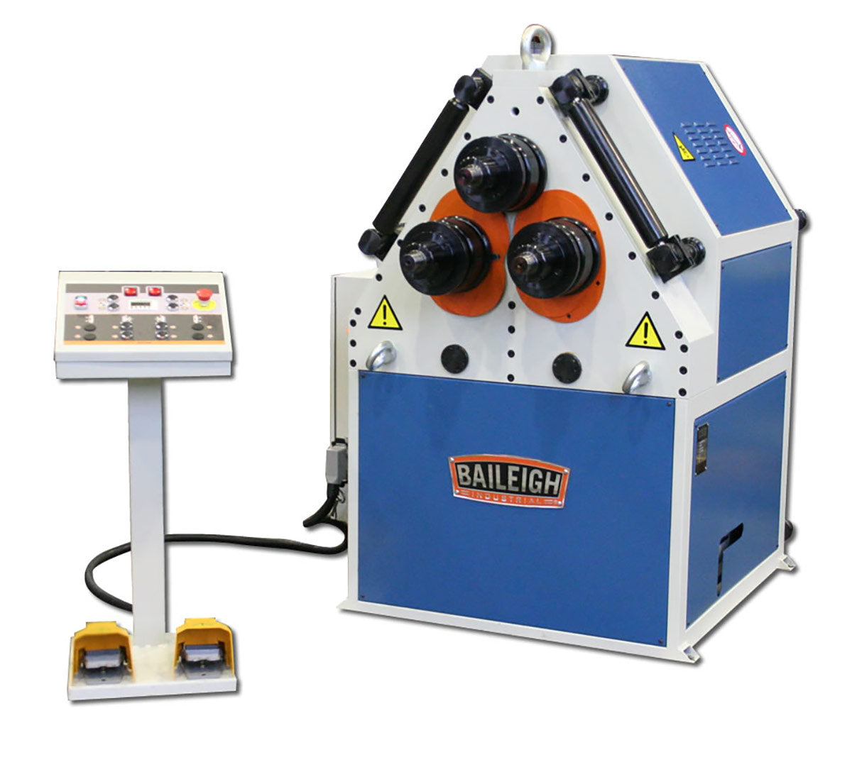 - Double-pinch bending rolls with 1 fixed top roll and 2 bottom rolls operate on independently-controlled hydraulic cylinders.