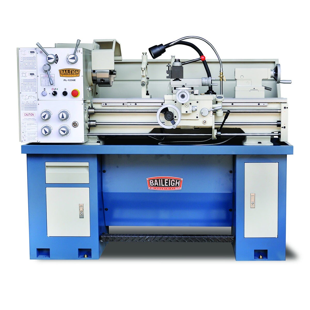 - Covered by a 1-year parts warranty.The PL-1236E is a great metal lathe for anyone that is looking an economical lathe that is high in quality and features. Like all Baileigh Industrial lathes, the PL-1236E gear head metal lathe has an integrated gear system that allows for taping, turning, and polishing. As far as entry level metal lathes go, this one has all the features of the more expensive models. The included accessories are, three and four jaw chucks, steady rest, follow rest, face plate, live center, foot brake, coolant system, and halogen work light.