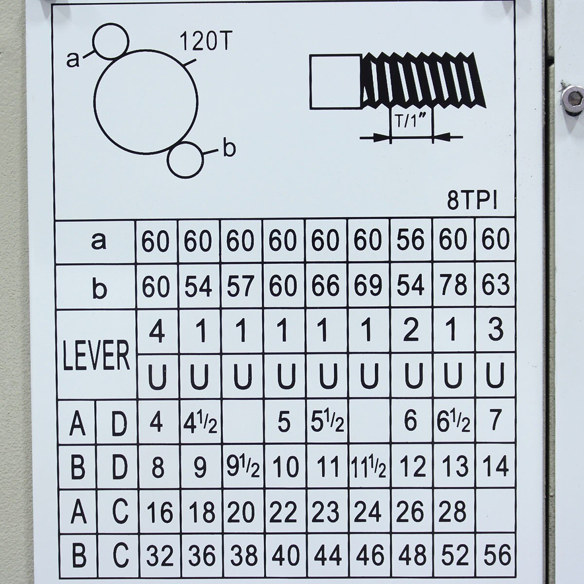 | Range Of Inch Threads | 4 - 56 T.P.I. |