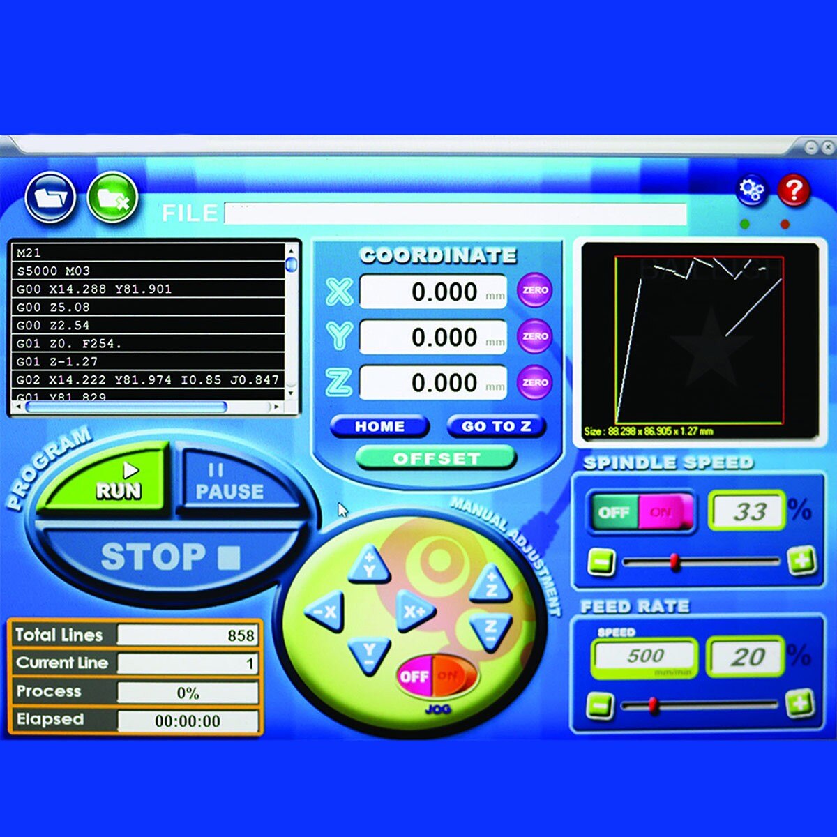 - Upload your design file to the table via a USB drive, then use the convenient handheld controller to move the spindle.