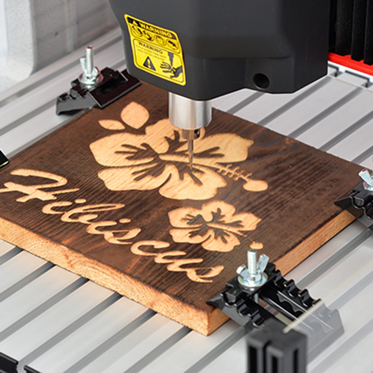 - Structurally strong extruded aluminum table won’t buckle under material weight or spindle pressure.