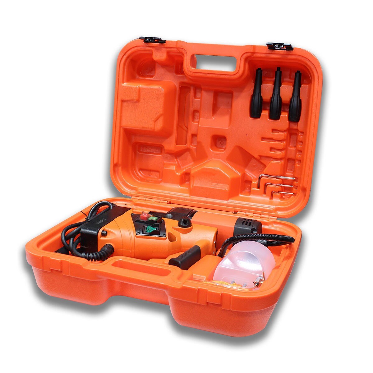 - Heavy duty ABS carrying case helps you transport the drill to job sites.