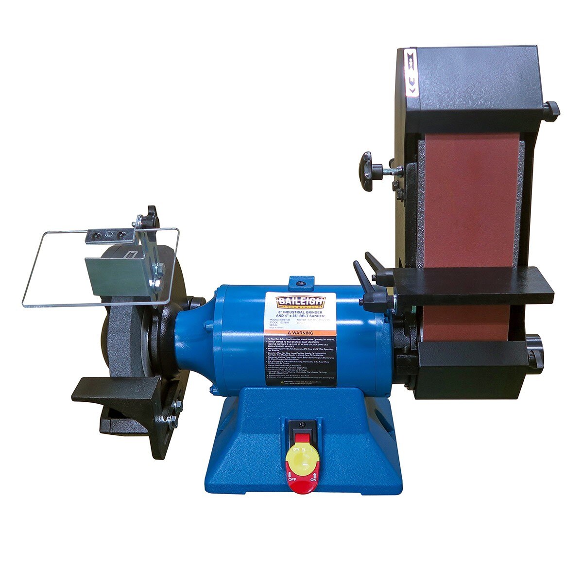 - Baileigh backs this combination 8" bench grinder & 4" belt grinder with a 1-year warranty
