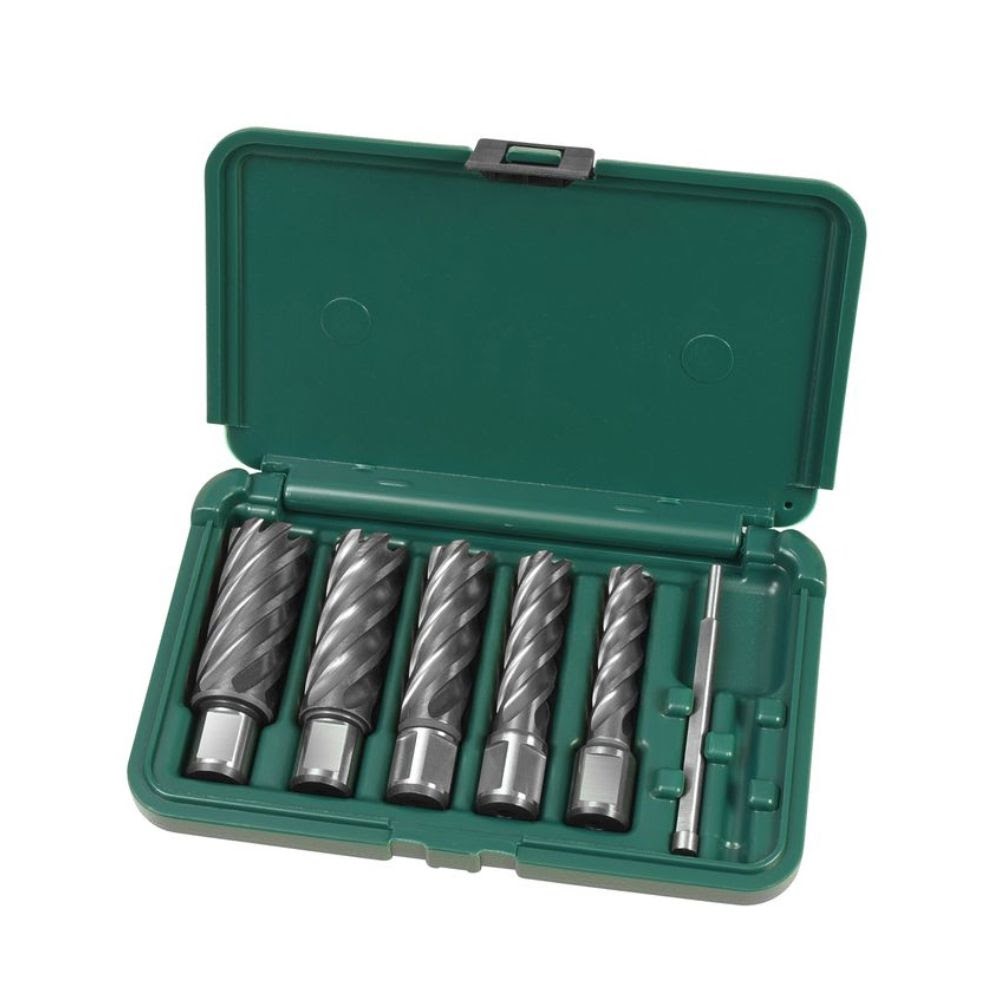 - Cutter Kit Includes 1" Depth Annular Cutter Diameters:9/16", 11/16", 13/16", 15/16", 1-1/16", pilot pin & carrying case