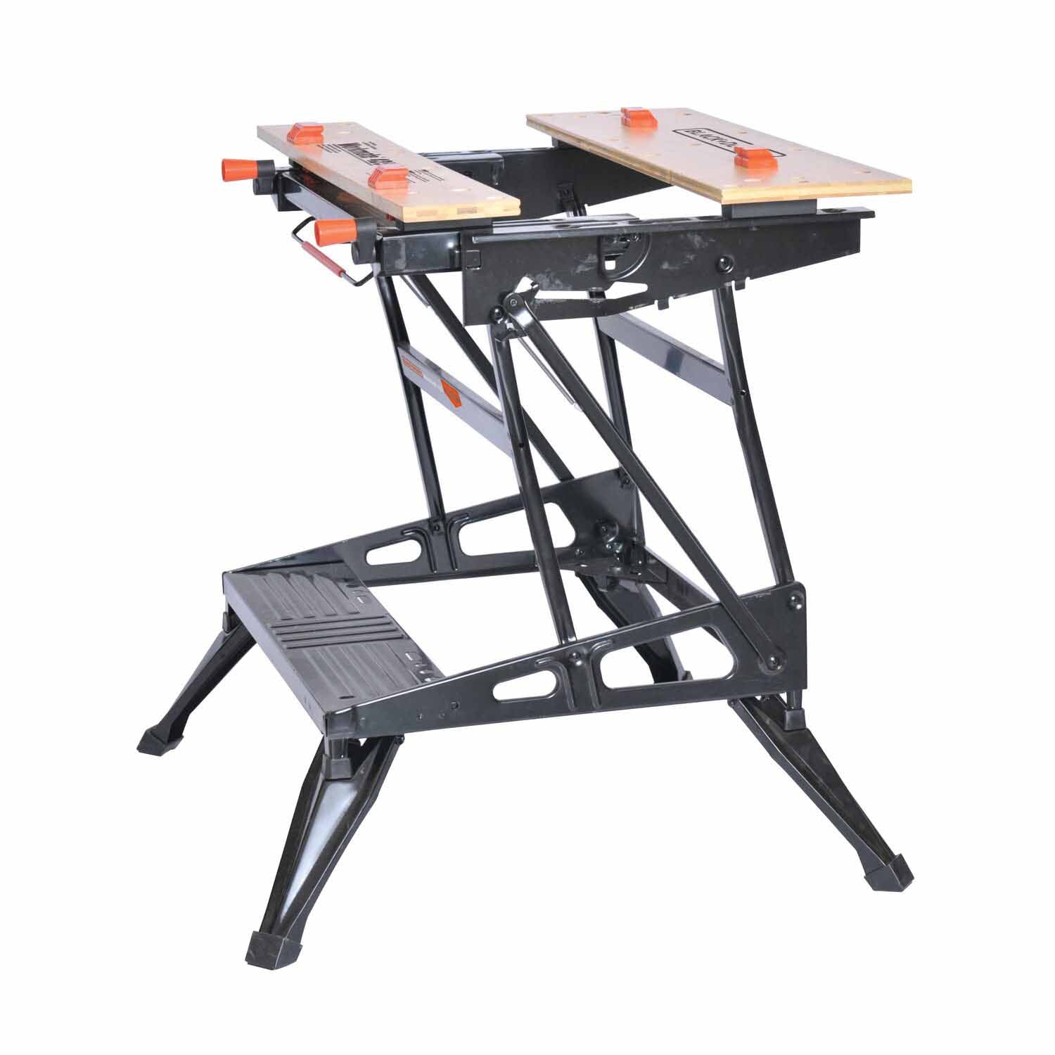 With the power to hold up to 550 pounds, the BLACK+DECKER™ Workmate® portable woodworking bench and vise can stand up to tough tasks. Features the One-Handed Clamp™ system and adjustable swivel pegs for clamping awkward shapes.