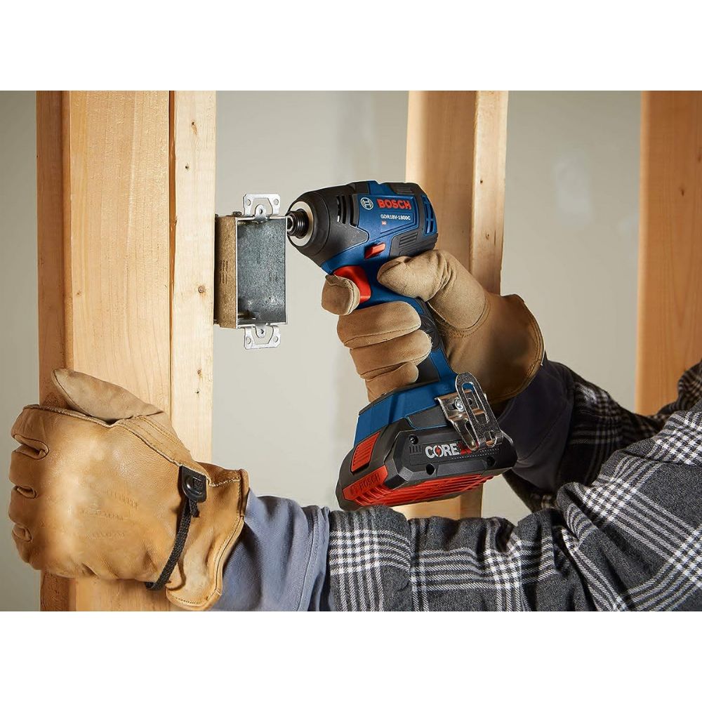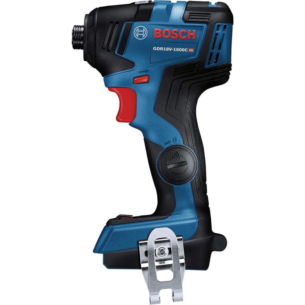 This 1/4 In. Hex Impact Driver with an EC Brushless motor delivering up to 1,800 In.-Lbs. of torque. The GDR18V-1800C 18V 1/4 In. Hex Impact Driver has a Compact Impactor design, with a head length only 4.9 In., which makes reaching tight spaces easier. It features the Bosch hammer-and-anvil system to produce 4,000 impacts per minute (ipm) as well as a 3,400 rpm speed. It is able to handle the toughest fastening tasks found on the jobsite. It weighs only 2.4 Lbs. (tool only, not including battery). The variable-speed trigger provides accurate driving speed. The driver has Bluetooth® connectivity, which connects to optional Connectivity Tool Module to customize tool settings on a connected device, as well as an LED light system to illuminate the work area. This is a bare-tool kit; the battery and charger are sold separately.