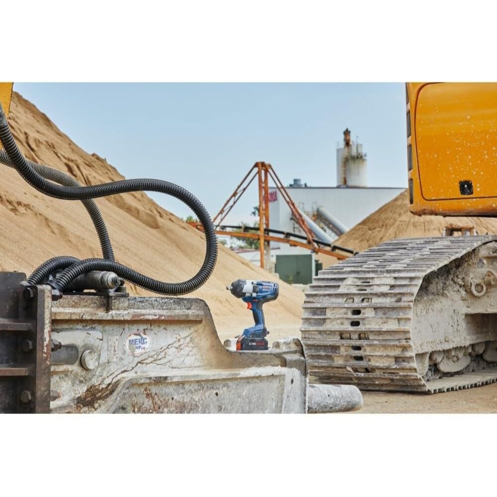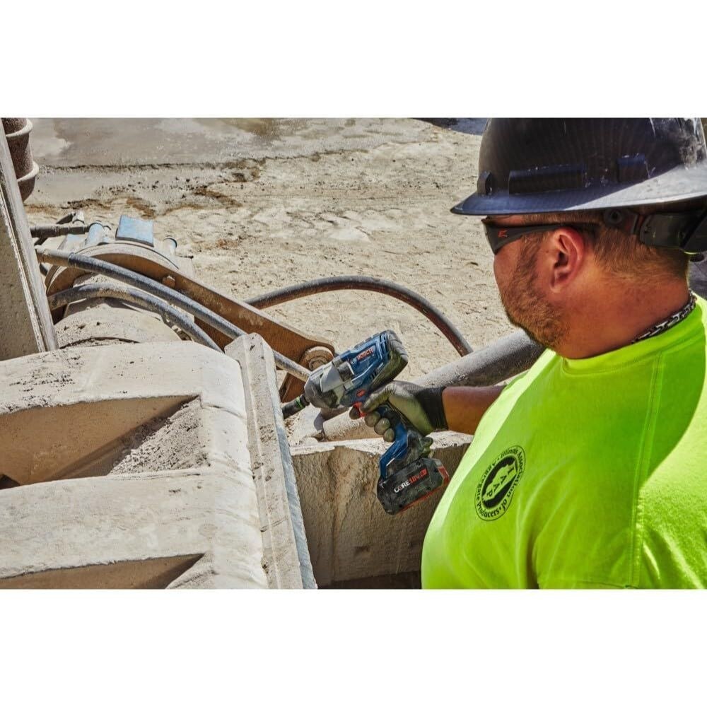 The Bosch PROFACTOR™ GDS18V-740C 18V Connected-Ready 1/2 In. Impact Wrench with Friction Ring is designed for breaking free and driving large bolts, nuts and anchors quickly. It is part of the PROFACTOR™ System, which pairs BITURBO Brushless™ Technology with a CORE18V® High Power Battery. BITURBO Brushless™ Technology is a high-performance motor and drive-train system designed to deliver power comparable to high-demand corded tools. The tool delivers up to 740 Ft.-Lbs. fastening torque and 1,180 Ft.-Lbs. breakaway torque, while maintaining long runtime. In addition to three speed/torque settings this impact wrench also features special modes to help prevent workpiece and fastener damage. The presets include modes for metal screws and wood lag screws. Additional modes and customizations for specific screws and materials can be set and saved to the tool via the Bosch Toolbox App (connectivity module sold separately). In reverse, with bolt mode activated, the Auto Bolt Release stops rotation when there is no load on the tool to help prevent accidentally dropping bolts and nuts during removal. In addition to customizing settings and modes, connectivity (module sold separately), provides tool specific information and feedback. The variable-speed trigger provides accurate driving speed. It also has an LED light system to illuminate the work area. The wrench features a rubber head casing that helps protect workpiece and tool from damage.