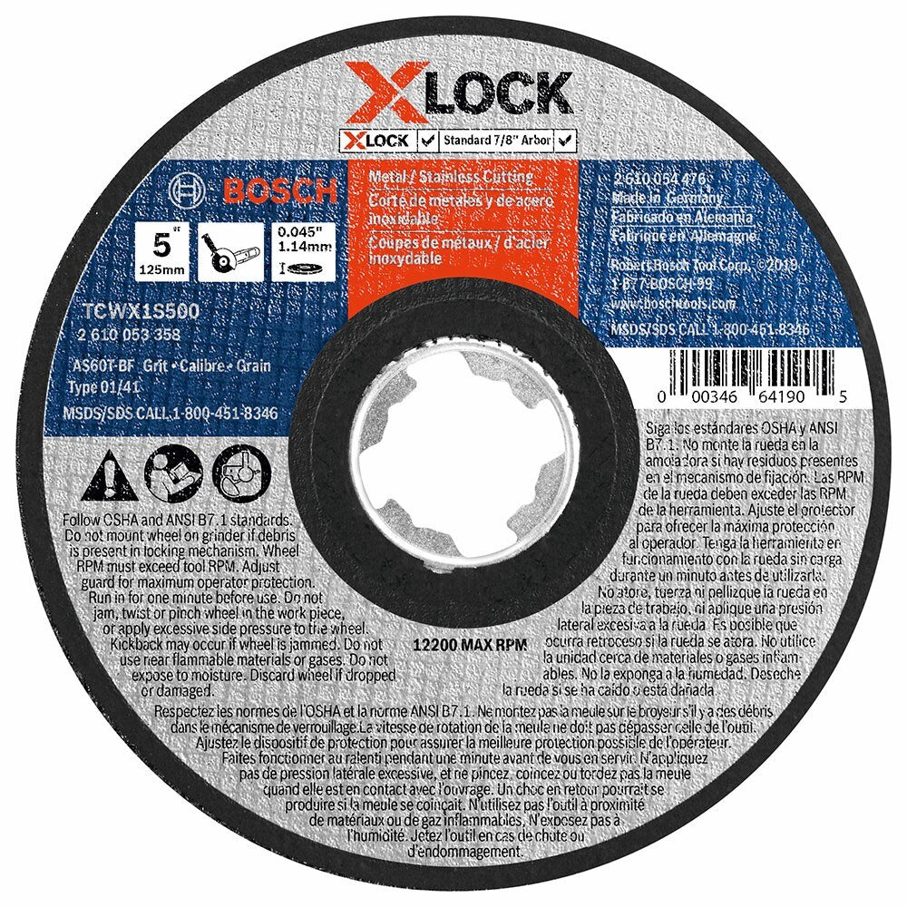 - Backward compatible – Bosch X-LOCK abrasive wheels are backward compatible with standard 7/8 In. arbor mounts