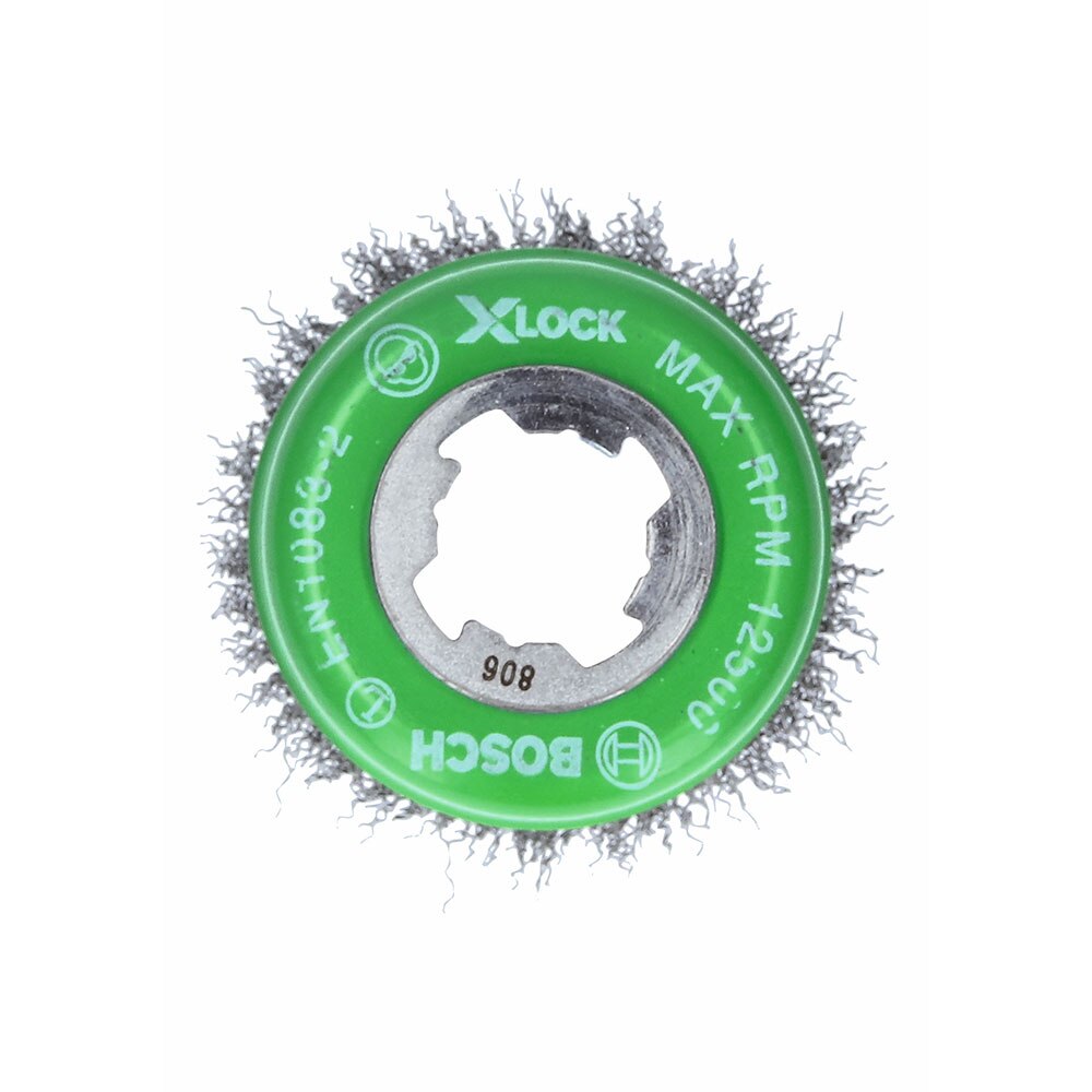 Bosch's X-Lock Cup Brushes feature the X-Lock mount offer a wheel change that's up to five times faster than conventional interfaces. There’s an audible snap when mounting an X-LOCK wheel on an X-LOCK grinder. The wheel mounts properly without the need for a spanner wrench or flange nuts. The wheel is released from the grinder with the pull of a lever. Bosch Cup Brushes are ideal for removing weld scale, burrs and corrosion. Crimped wire cup brushes are made with carbon steel bristles that provide a softer brushing action. Bosch knotted wire cup brushes are designed specifically for angle grinders. The precision-balanced cup virtually eliminates vibration, and they are made with high-quality materials.