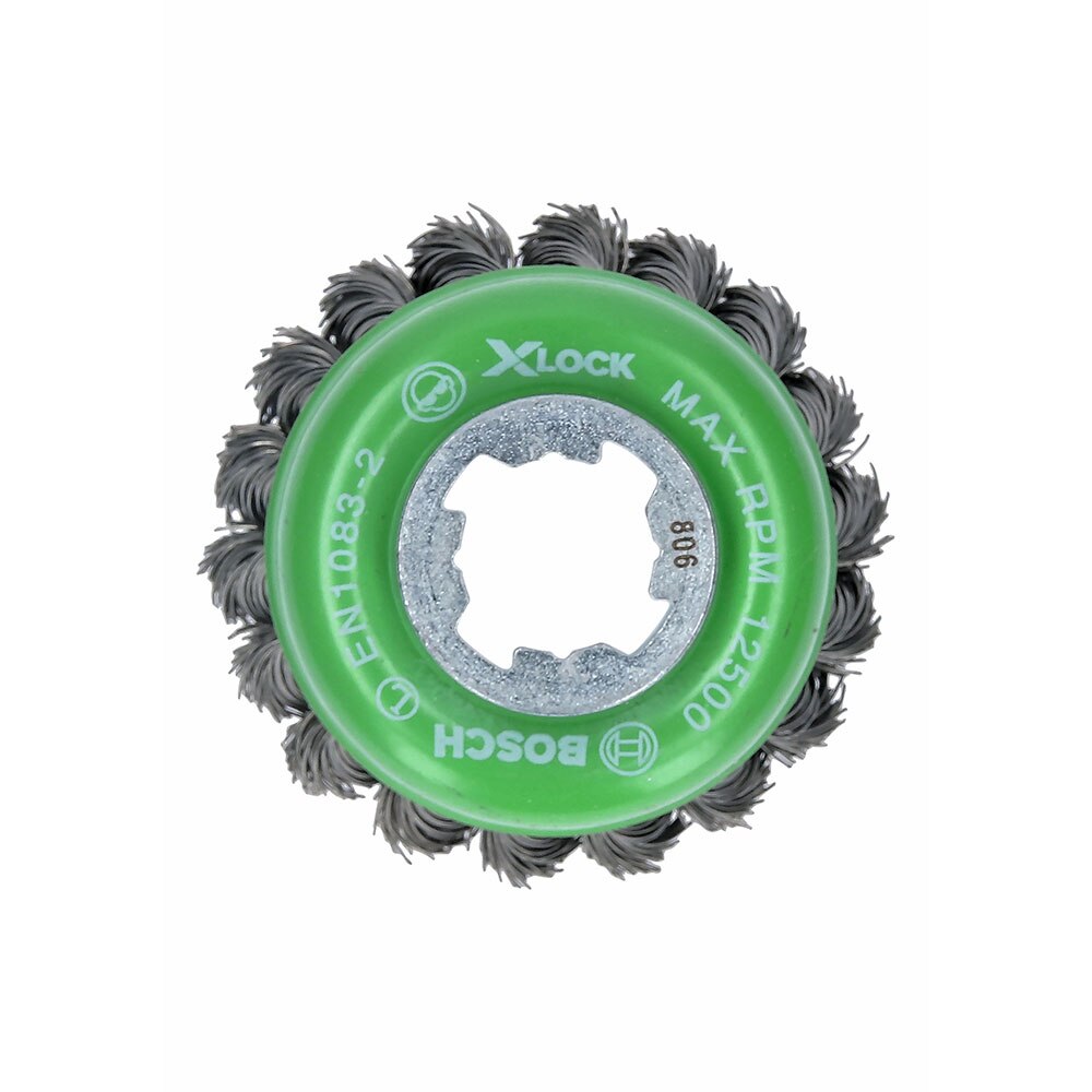 Bosch's X-Lock Cup Brushes feature the X-Lock mount offer a wheel change that's up to five times faster than conventional interfaces. There’s an audible snap when mounting an X-LOCK wheel on an X-LOCK grinder. The wheel mounts properly without the need for a spanner wrench or flange nuts. The wheel is released from the grinder with the pull of a lever. Bosch Cup Brushes are ideal for removing weld scale, burrs and corrosion. Crimped wire cup brushes are made with carbon steel bristles that provide a softer brushing action. Bosch knotted wire cup brushes are designed specifically for angle grinders. The precision-balanced cup virtually eliminates vibration, and they are made with high-quality materials.