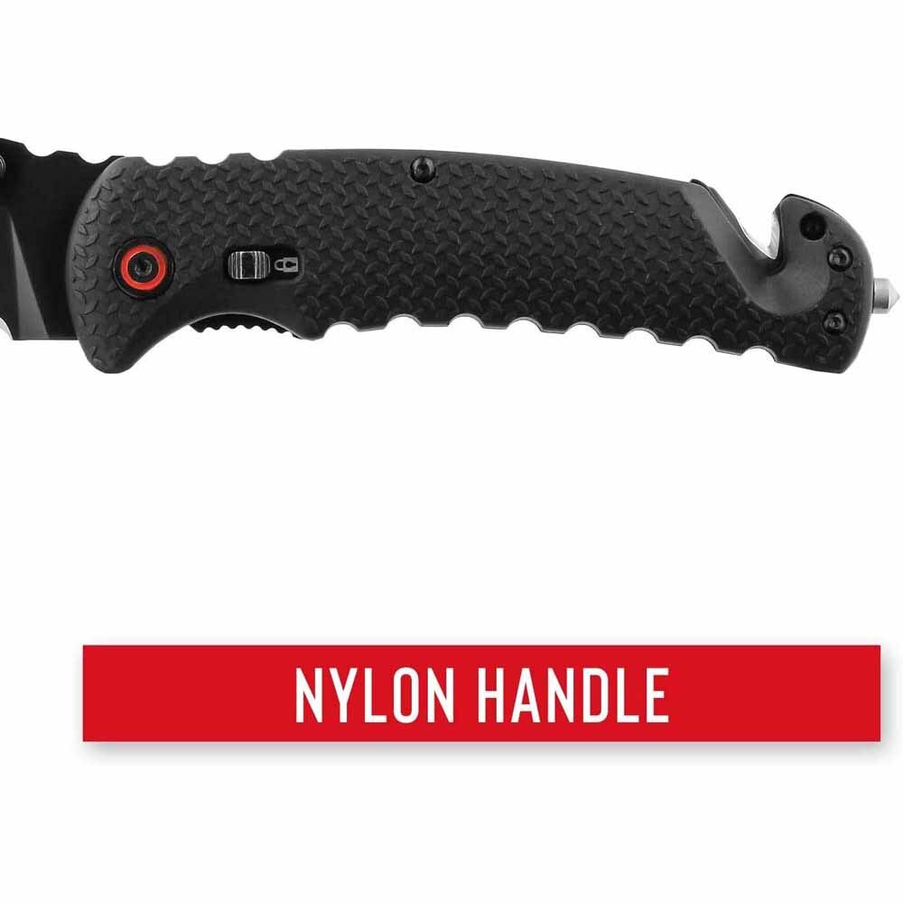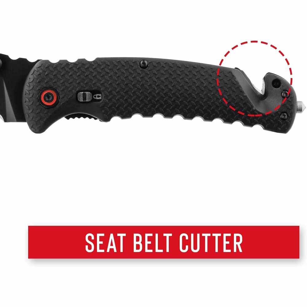 - Seat Belt Cutter: Get out fast when seconds count. The recessed Seat Belt Cutter, located on the back of the knife handle, lets you quickly slice through seat belt material to escape your vehicle in an emergency.