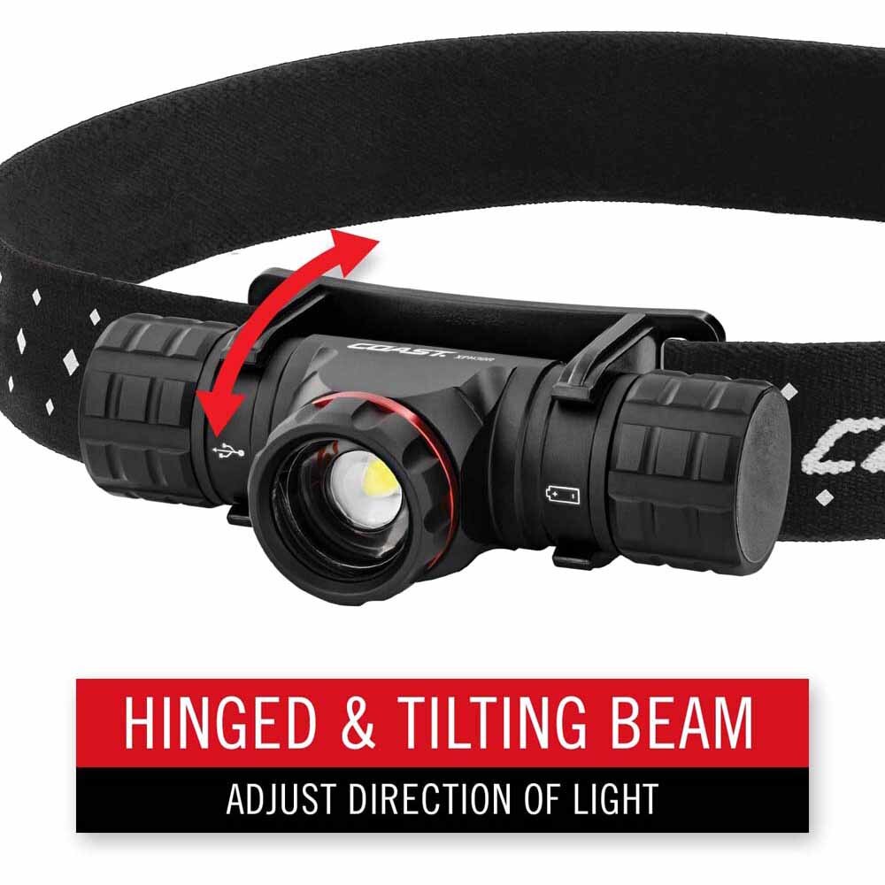 - Hinged Beam: Up, down, or straight ahead. All COAST headlamps feature a hinged, tilting head so that you can adjust the light’s direction and see right where you’re looking.