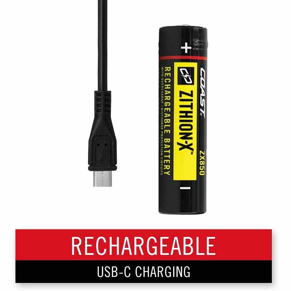 - Rechargeable Dual Power: The Rechargeable Dual Power system offers flexibility, with a ZITHION-X™ rechargeable battery or standard non-ported ZITHION™ battery. You can also use COAST Extreme Performance alkaline batteries or other brand-name options, giving you the convenience of both rechargeable and disposable power.