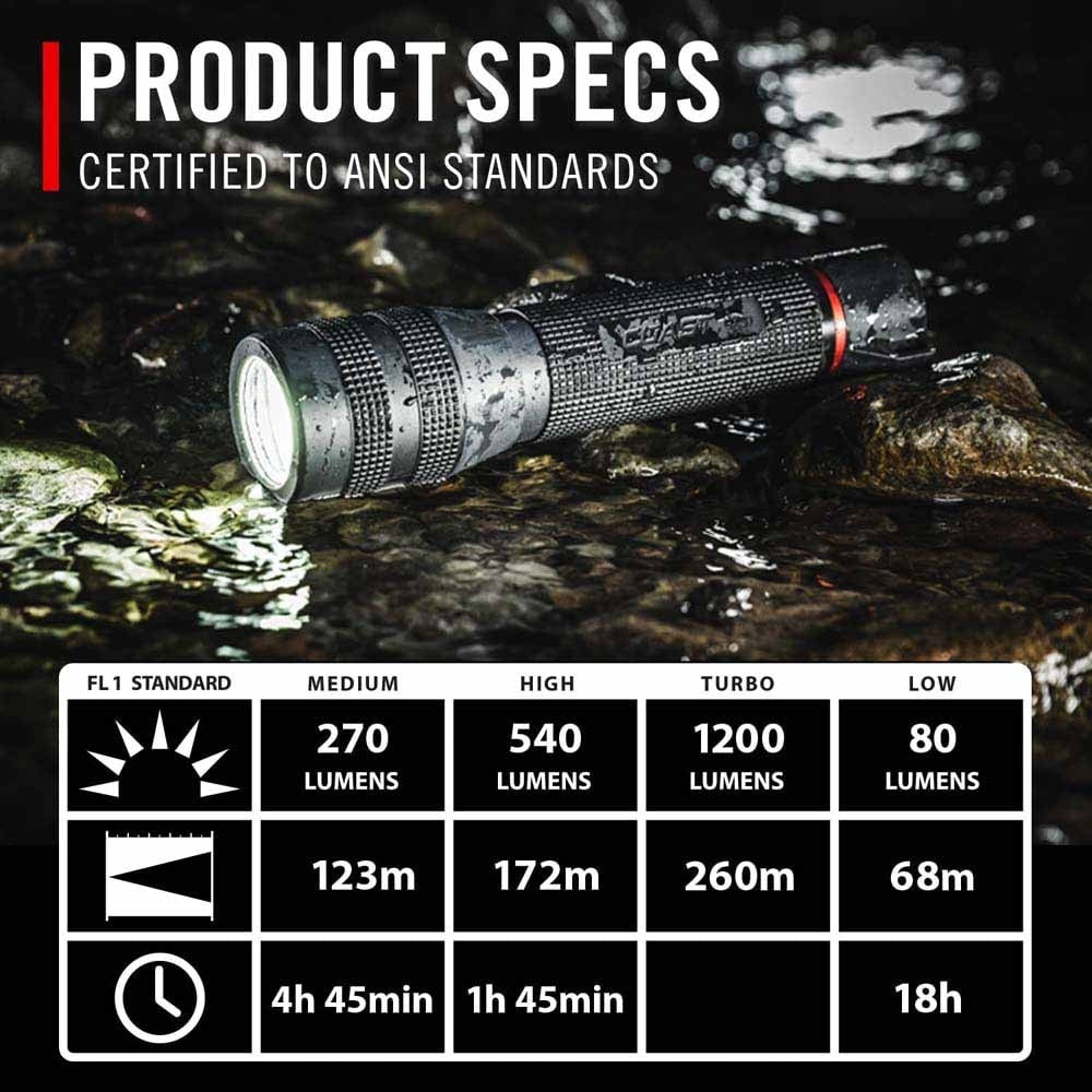 - Twist Focus: Easily adjust between spot and flood beams by rotating the flashlight head to dial in the perfect beam shape for your needs.