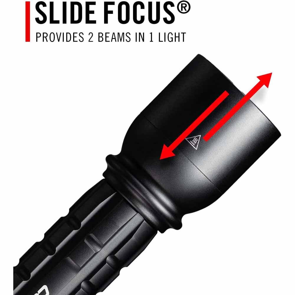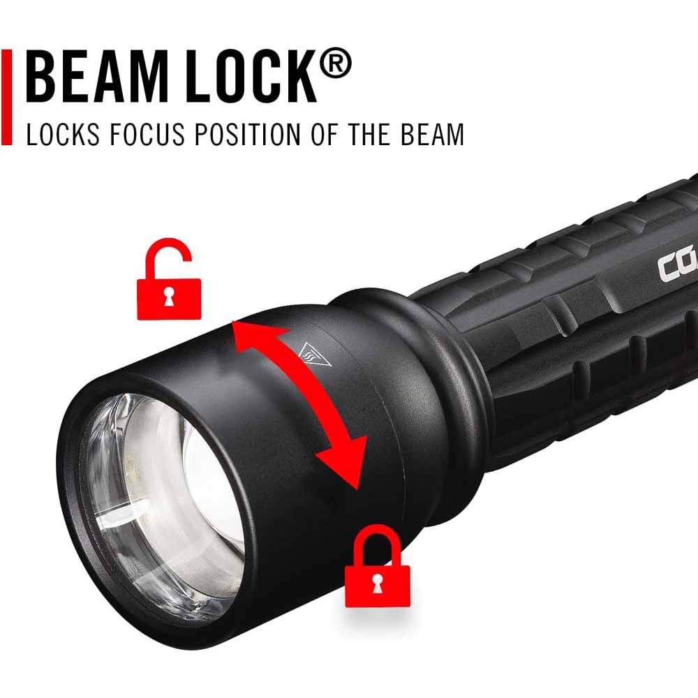 - Beam Lock: Makes our SLIDE FOCUS system even more valuable, with the option to lock the beam in place on spot, flood, or anywhere in between. Twisting the head of the light to the left locks the beam in place, and twisting it back to the right releases the slide mechanism back into motion.