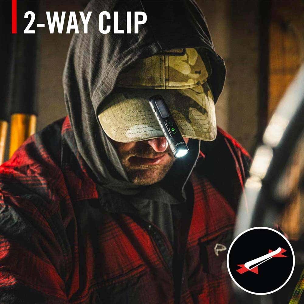 - Two-Way Clip: Store it away or shine it forward. The Two-Way Clip enables gives you flexibility to stash the light in your pocket or clip it to the brim of your hat.