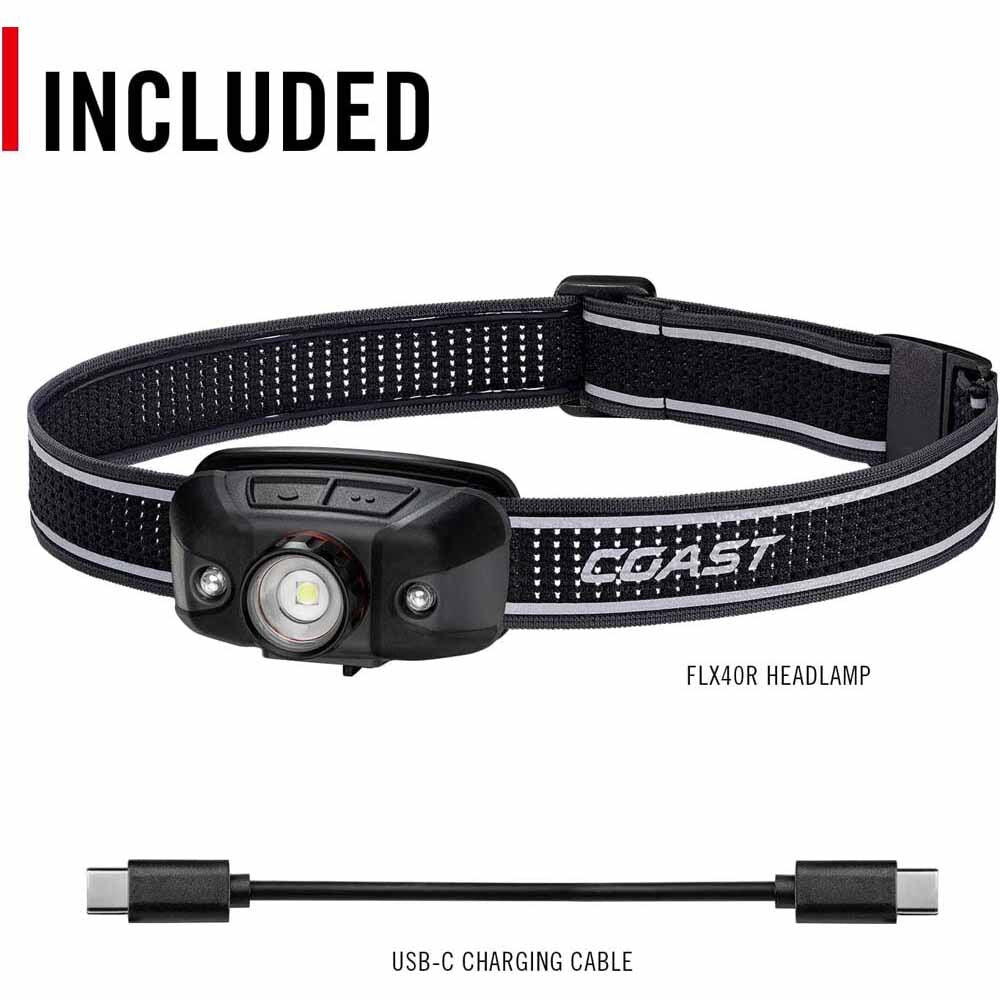 Coast 31131 Flx40R Headlamp Usb-C Rechargeable Tri-Color Beam 800 Lumens 137M 10H