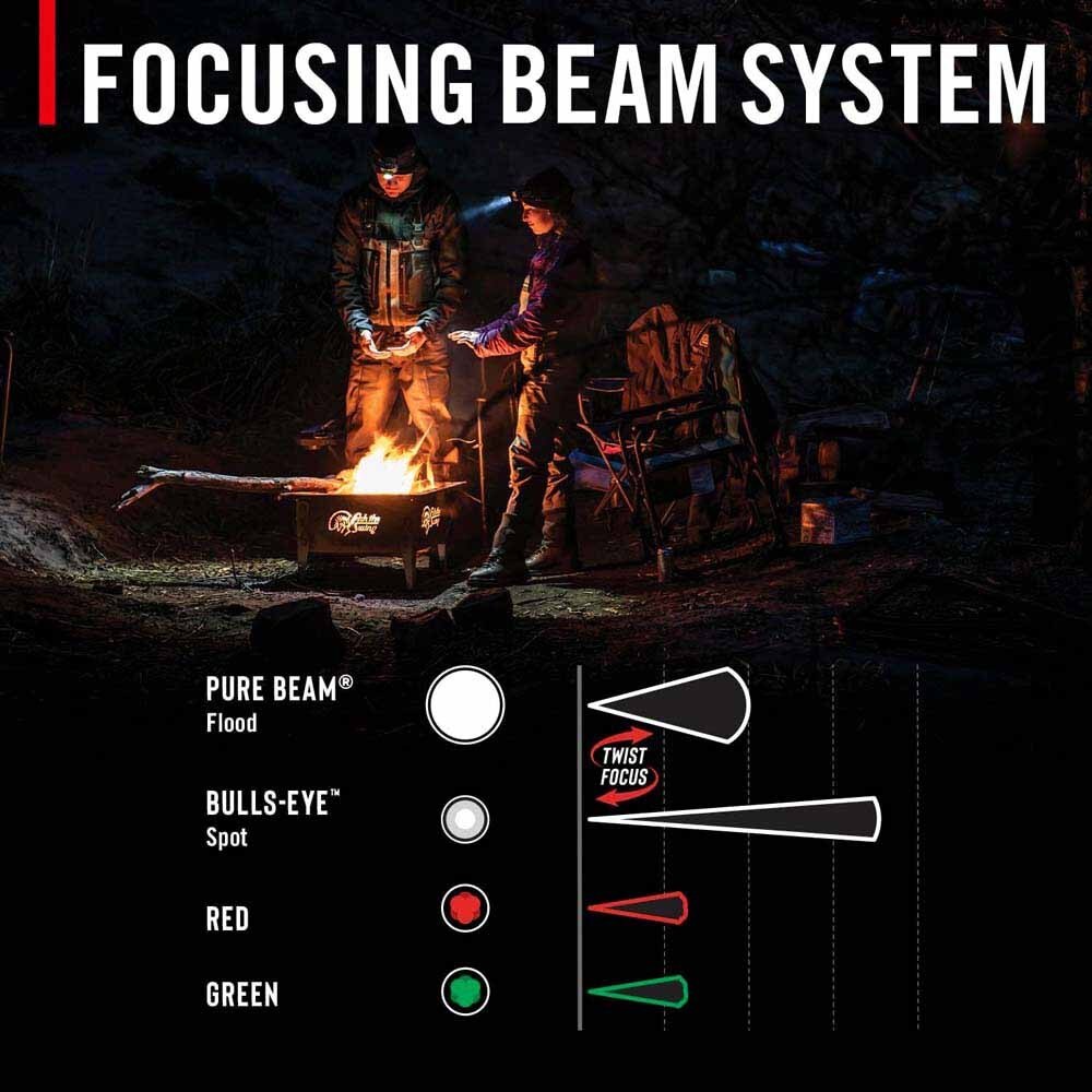 - Pure-Beam Focusing Optic: Seamlessly transition between short and long-range beams without halos or hot spots. The Ultra View Flood beam offers edge-to-edge clarity in a wide circle, while the BULLS-EYE™ Spot Beam projects a sharp, focused light with a transitional halo for extended viewing.