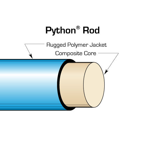 Python rods are best suited for less demanding applications. It has strength properties similar to our Cobra rod, but is more flexible. Also, like the Cobra, it has a heavy-duty outer plastic coating to resist abrasions and reduce wear. Includes one male and one female end fitting, and a tapered head.