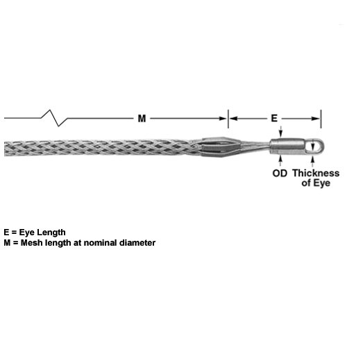 Multiple Strength Pulling Grips are designed for pulling ACSR, aluminum or copper bare conductor, ground wires, messenger strands, wire rope and insulated cables. They are ideal for overhead transmission and distribution line stringing where moderate loading is anticipated. They are economical tools used for attaching conductors to pulling lines and double socking for conductor-to-conductor connections. Rotating Eye is not a swivel. It will not turn while under tension, but it can turn to relieve pulling torque when the tension is relaxed.