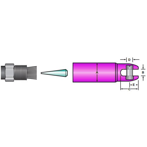 The Clevis Head Power Pulling Eyes feature a slotted head with clevis pin to allow direct attachment to the Condux multiple pulling harness. When pulling multiple cables into a single conduit, the conductors can be attached to a harness and installation is simplified to a single pull of one assembly. Each Clevis Head Power Pulling Eye includes a clevis socket, sleeve nut, and plug.