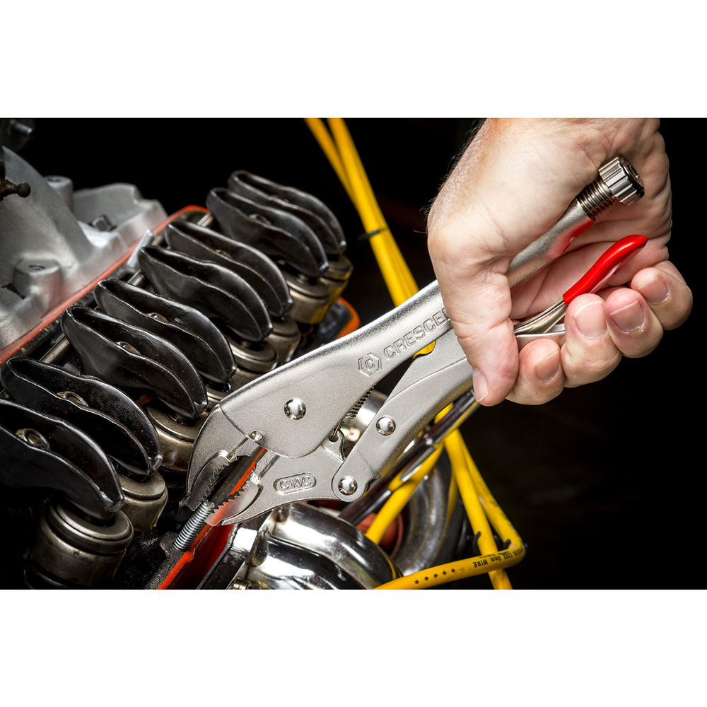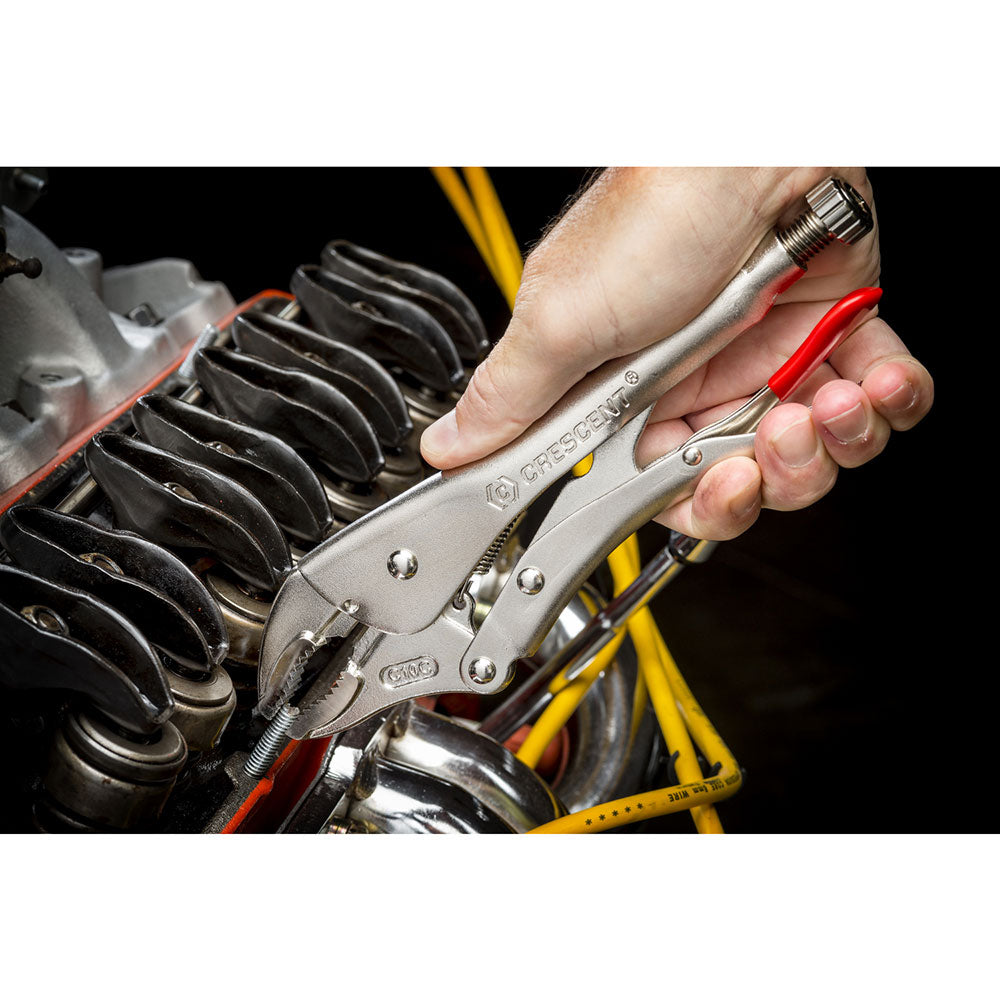 We make Crescent locking pliers to an exacting standards that result in improved durability and long-term performance. They meet stringent ASME standards B107.24 and B107.36, as applicable, including proven strength and maximum jaw opening capacity. All Crescent locking pliers have a cushion grip trigger for easy release and a hex key slot in the tightening screw for when additional leverage is necessary. The head and body of these pliers have the narrow profiles necessary for work in tight and confined spaces.
