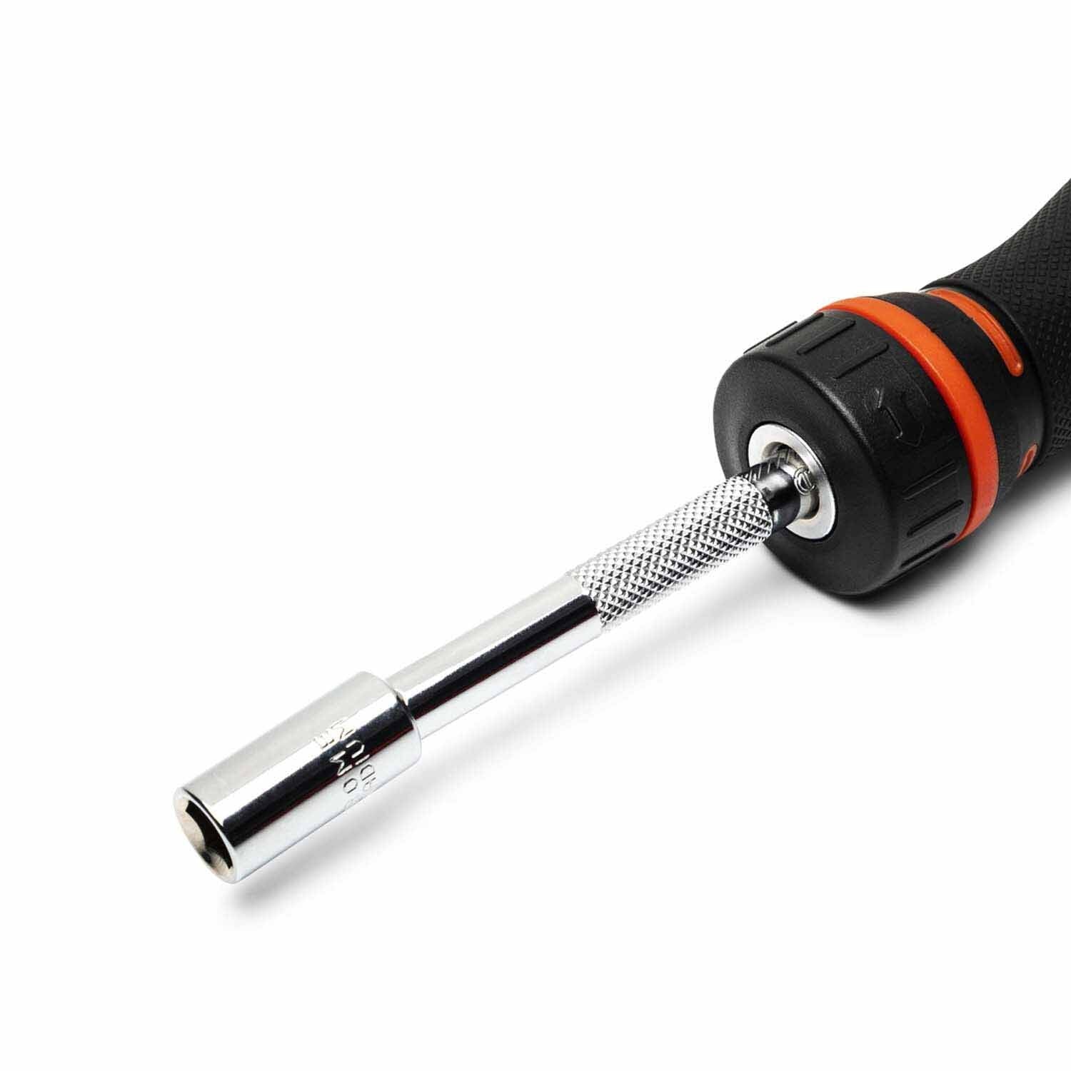 - Interchangeable S2 steel bits: Phillips, slotted, hex, and Torx