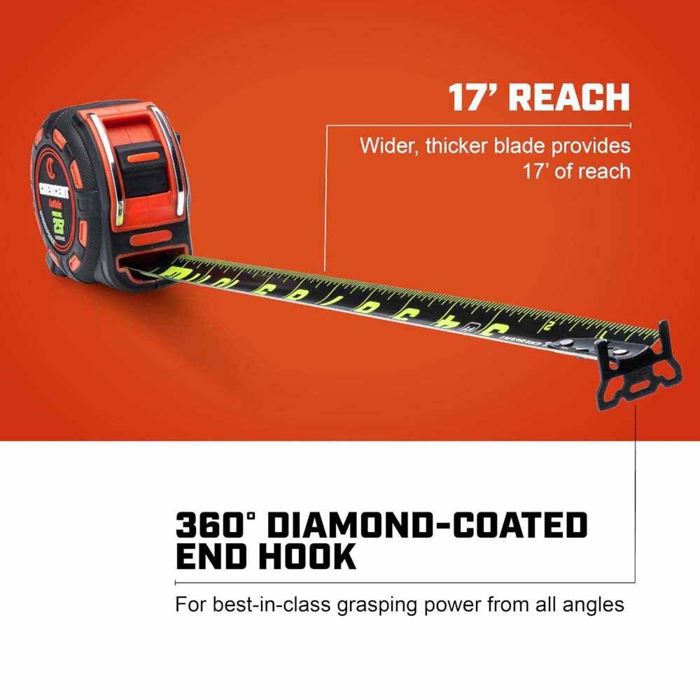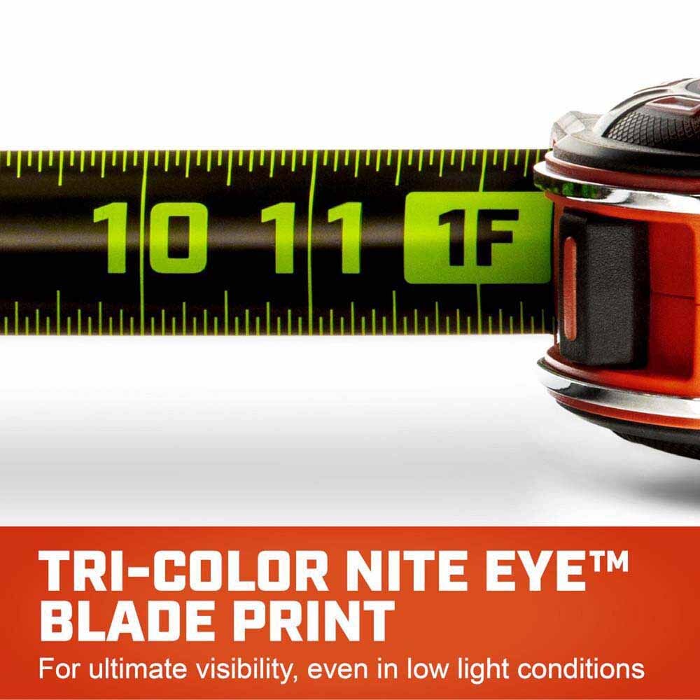 The Crescent SHOCKFORCE tape measures features a high-contrast tri-color NITE EYE blade for market-leading visibility, even in low light conditions. The all-new STABLEWING blade shape provides 16ft of stable reach, reduced blade roll-over, and a flatter profile for easier marking. The 3X clear-coated blade and mylar coating on the first 6 inches provides protection against wear and tear. These features are housed in an impact-resistant case that has been drop-tested 120 feet to withstand even the toughest of jobsite conditions.