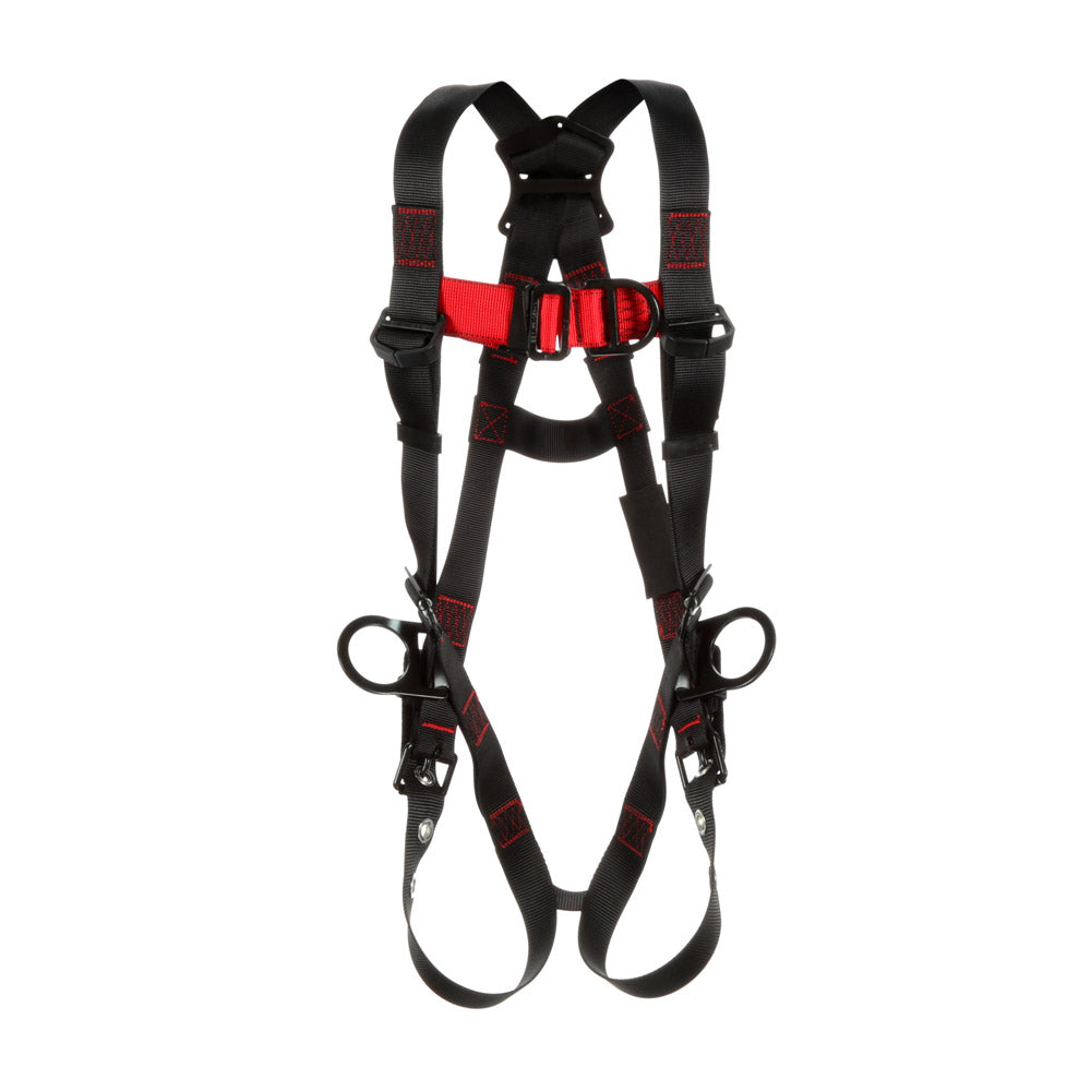 - Back, Front and Side D-rings, Tongue-Buckle Leg Connection, Pass-Thru Chest Connection