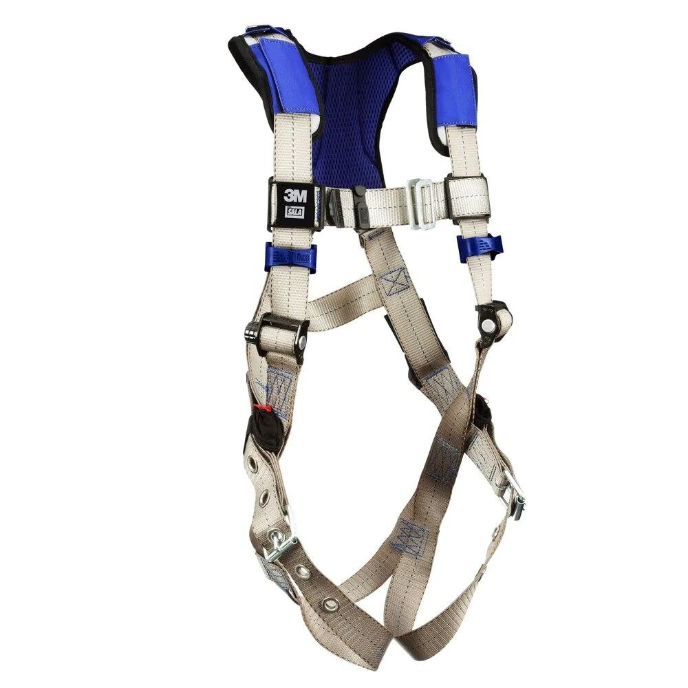 | Specifications Met | ANSI Z359.11, OSHA 1910.140, OSHA 1926.5023M™ DBI-SALA® ExoFit™ X100 Comfort Vest Safety Harness is equipped with aluminum back D-ring locations. The X100 comfort harness is built with 6,000lb polyester webbing, nylon/polyester hybrid comfort padding and robust alloy steel hardware. The anti-slide back D-ring plate design helps reduce dorsal D-ring slide and enables a convenient adapter location to connect personal SRLs. Available in Small, Medium, Large, X-Large, 2X-Large sizes. |